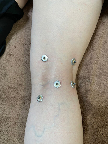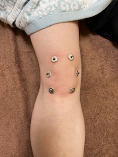 写真のようにお灸を据えると劇的に痛みは緩和し、膝も軽くなり歩行しやすくなります。